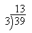 13 X 3 = 39.