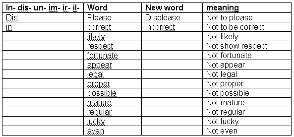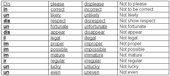 Negative Prefixes.